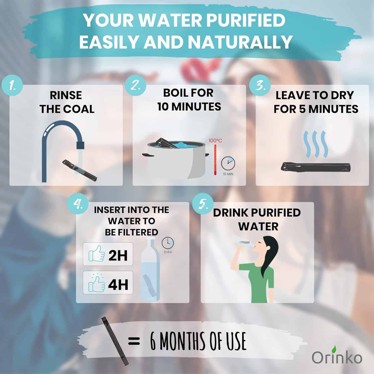 Activated Bamboo Charcoal has a better absorption than other woods (Oak, etc.), filters water more quickly, and more effectively filters Heavy Metals and Chemicals. It releases minerals and oligoelements for a more enriching water!
