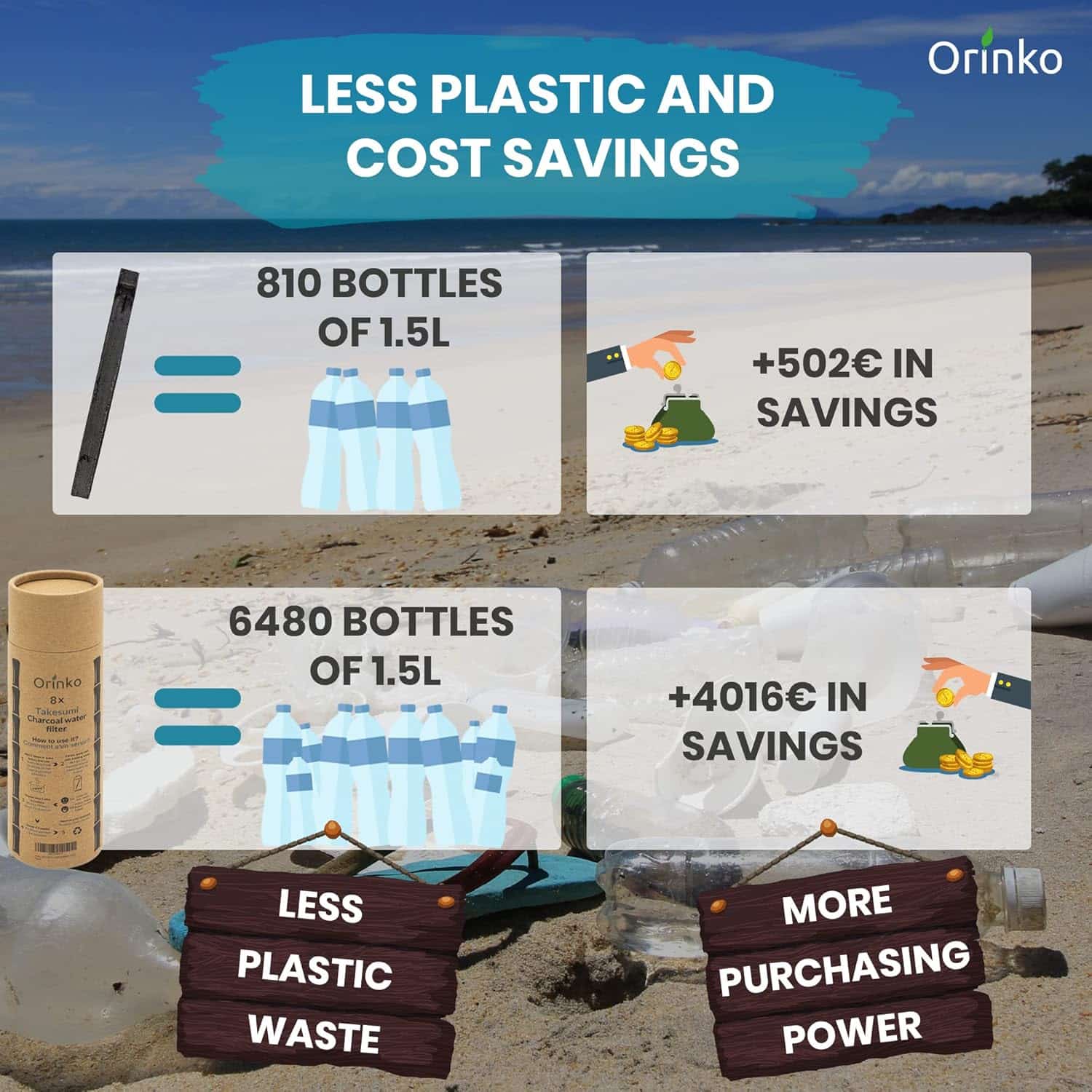 From Sustainably Managed Bamboo Forests. No more need to buy bottled water, filter your own tap water yourself and save money.