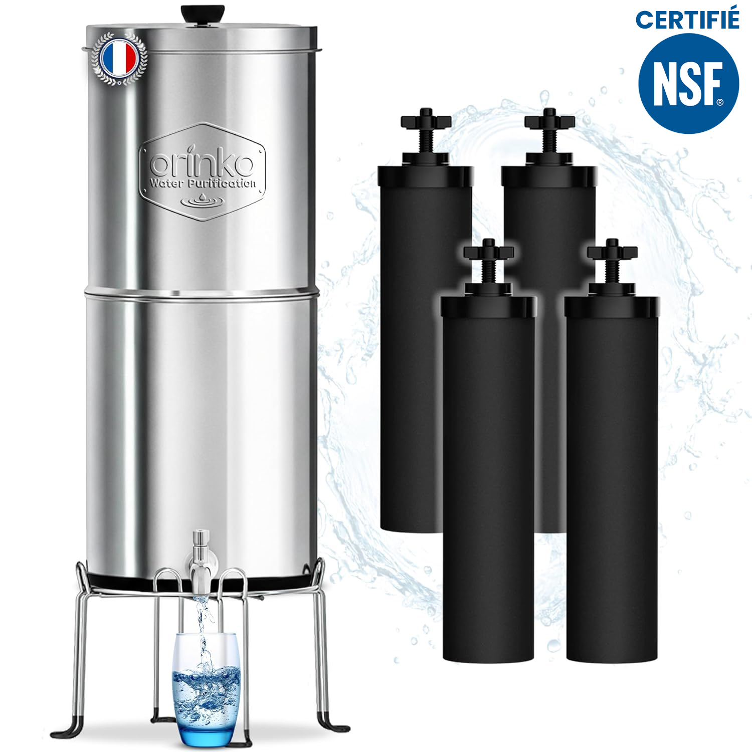 Les cartouches s’amorcent rapidement et peuvent être remplacées individuellement à tout moment. - 🔒 GARANTIE 10 ANS : Fabriqué pour durer, le filtre à gravité ORINKO est garanti 10 ans. Les cartouches de rechange bénéficient quant à elles d’une garantie de 2 ans.