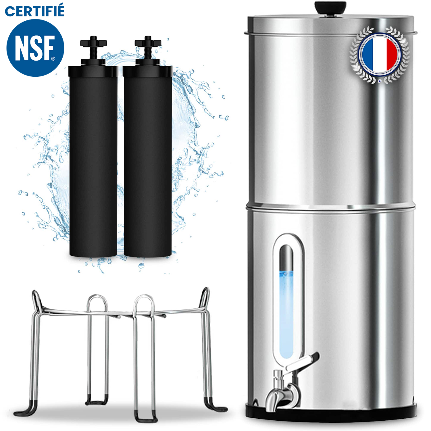 • 💧 FILTRE À GRAVITÉ CERTIFIÉ NSF : Profitez d’une eau pure et saine grâce à ce filtre à eau par gravité de haute qualité en acier inoxydable 304 et certifié NSF pour une filtration optimale, équipé de ses deux cartouches filtrantes en charbon actif.