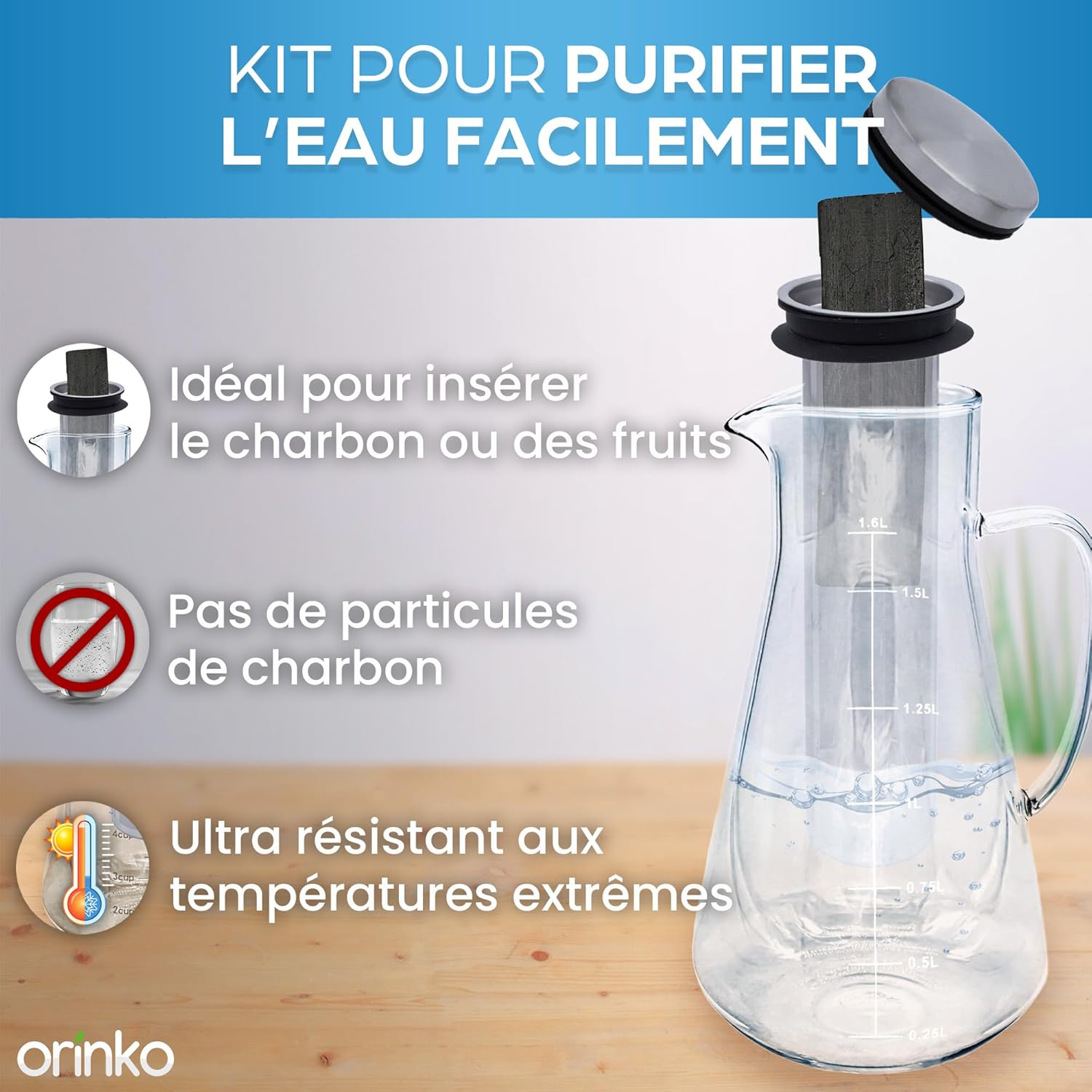 Pour une filtration qui réduit également les dépôts calcaires, nous vous conseillons notre kit de purification binchotan + perles de céramique.