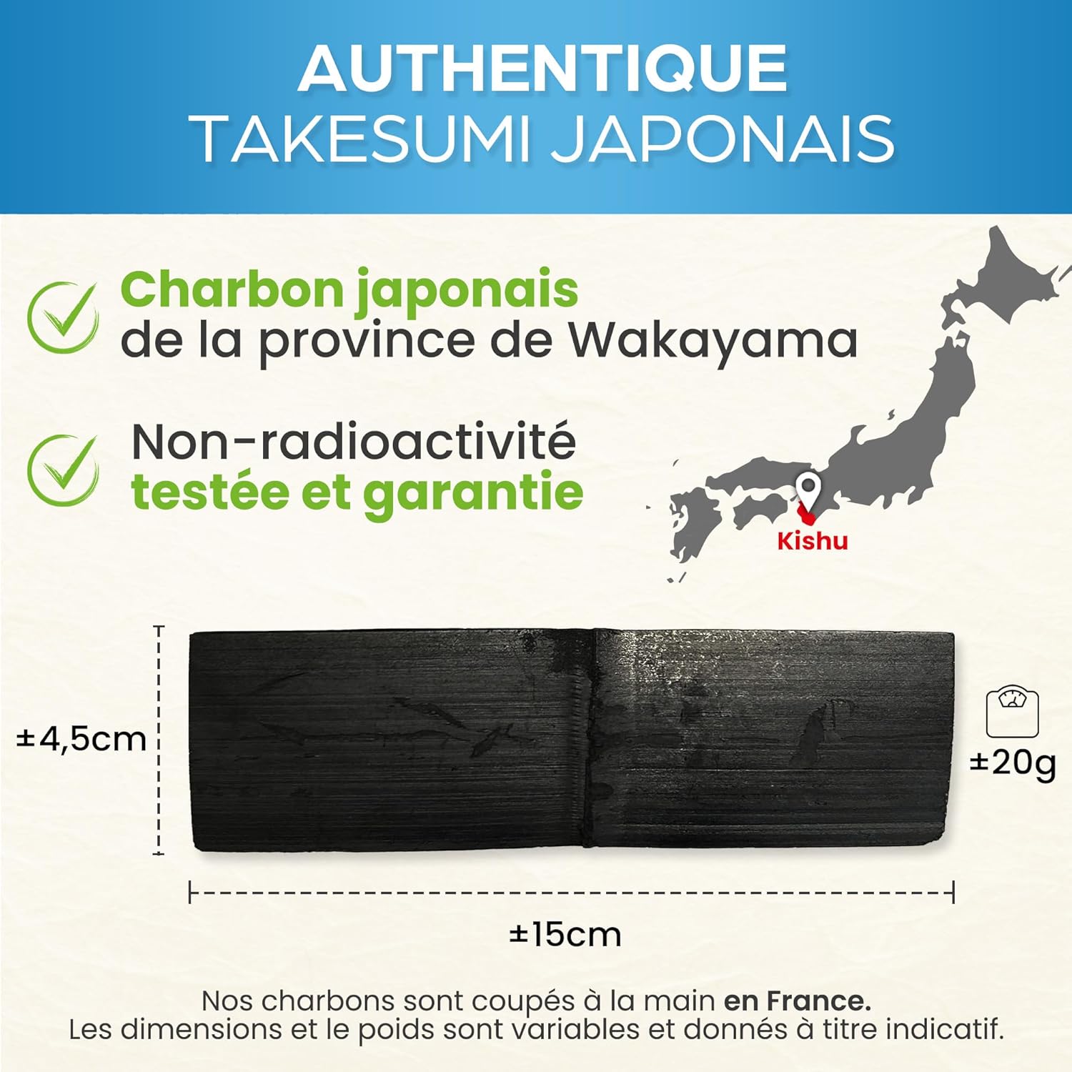 • Livrée avec deux charbons actifs Takesumi japonais pour purifier l’eau