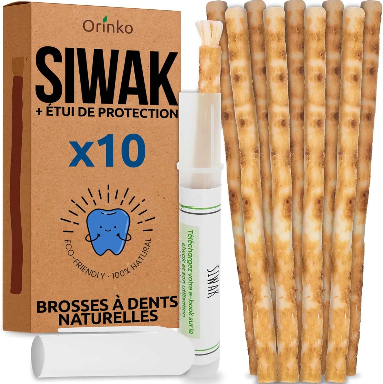Siwak x10 avec 1 Étui de Protection – Brosse à Dents 100% Naturelle – Nettoyant, Désinfectant et Blanchissant – Écologique, Biodégradable et Végan – Ebook Offert
