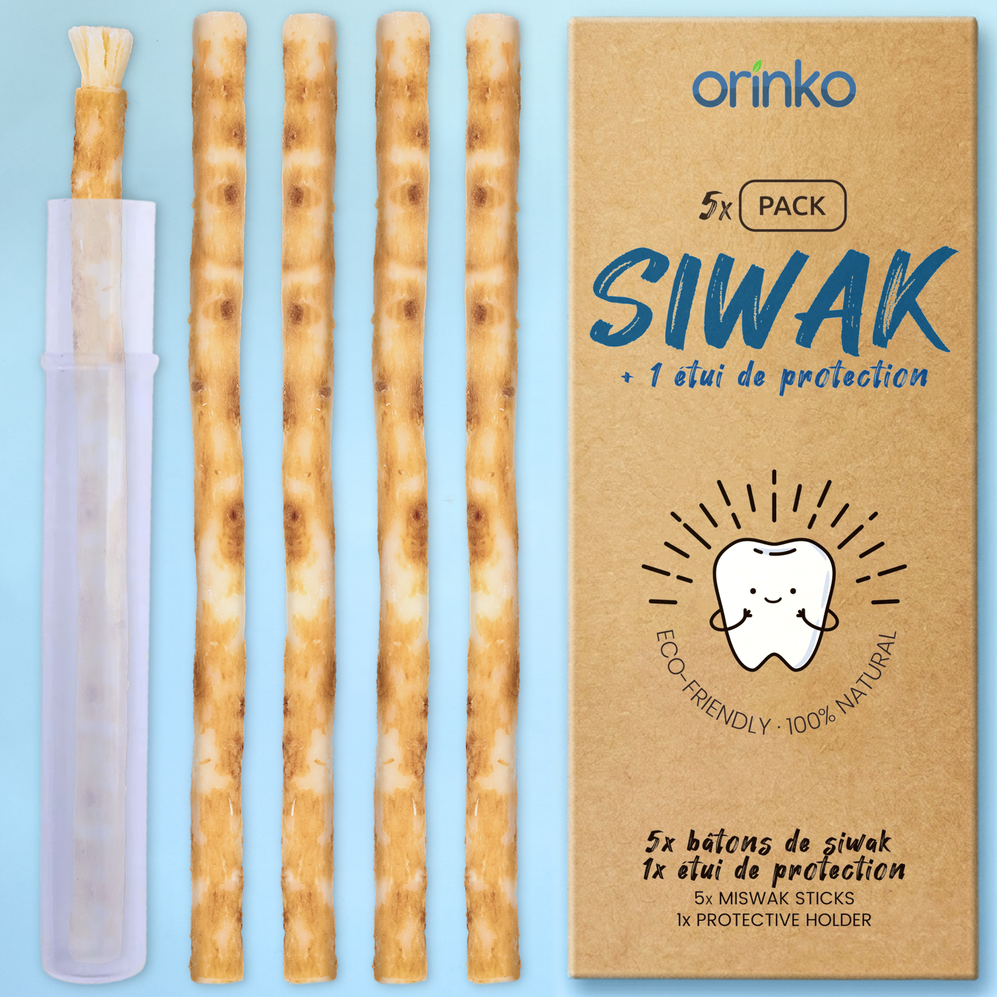 Orinko propose un éventail de produits d’hygiène 0 déchet, respectueux du corps humain et faciles à utiliser. Dans cette gamme, vous trouverez les Bâtons de Siwak (Miswak) – Brosse à Dents 100% Naturelle dont les Bâtons de Siwak (Miswak) X5 + Étui De Protection – Brosse À Dents 100% Naturelle.