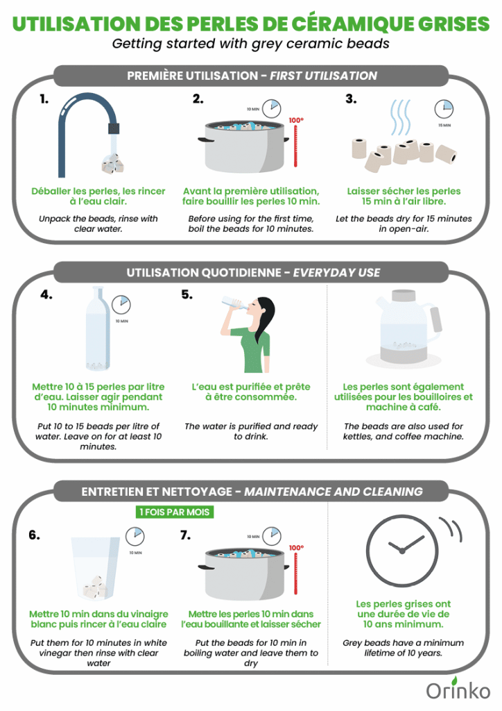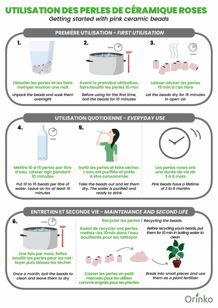 Et pour que cela soit encore plus clair, nous vous avons créé deux infographies avec chaque étape de l’utilisation des perles de céramique ! Si vous avez d’autres questions, n’hésitez pas à nous solliciter en commentaire. ?